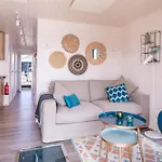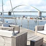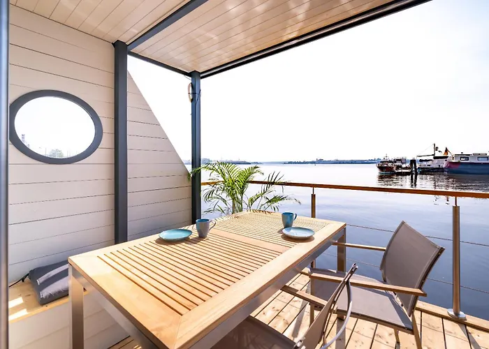 Situada a tan solo 1 km del Puente del Estrecho de Fehmarn, la villa Hausboot Schatzkiste Fehmarn invita a los huéspedes a relajarse en una terraza.